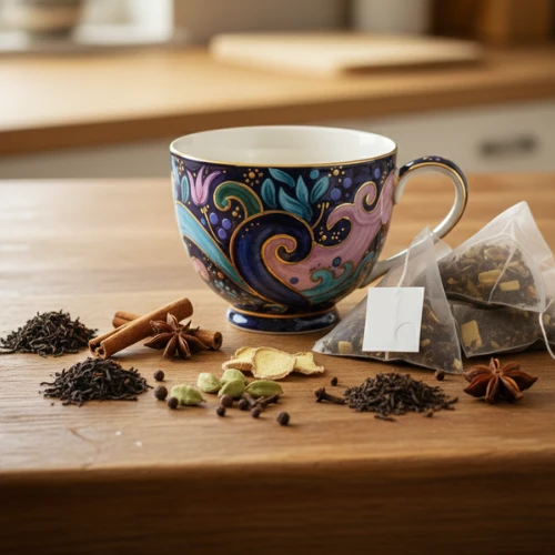 A classic chai-style cup with black tea depth and a warming finish that feels like a soft scarf.