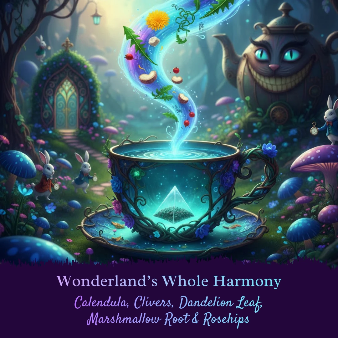 In a land where everything can feel a little topsy-turvy, balance is the greatest treasure of all. This organic infusion combines calendula, clivers, dandelion leaf, marshmallow root, and rosehips — herbs traditionally celebrated for their cleansing, restorative, and anti-inflammatory properties.